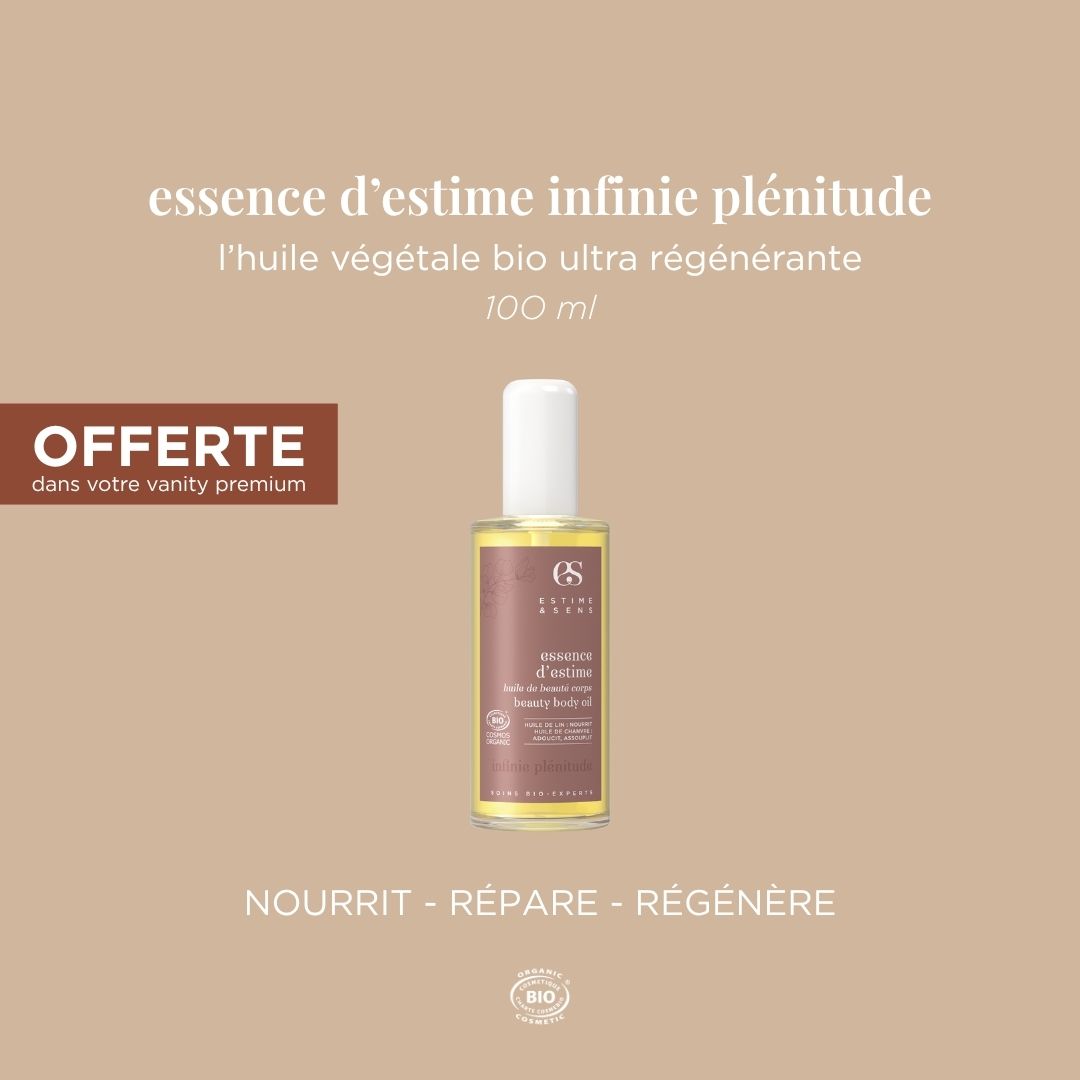 Offrez-vous une parenthèse de beauté naturelle avec le vanity premium, une édition limitée avec une essence d'estime infinie plénitude offerte pour sublimer la peau et l’esprit en cette période de fête.